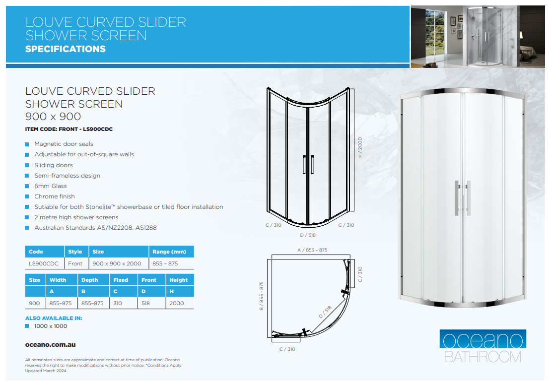 Louve Curved Slider Shower screen 900 x 900