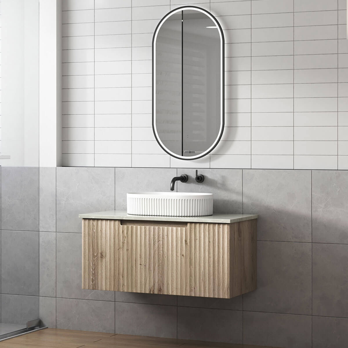 Calder Ribbed Wood Grain Wall Hung Vanity (600-1800mm)