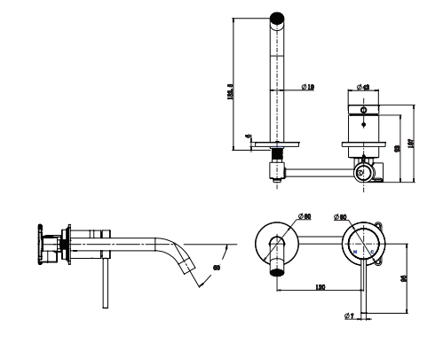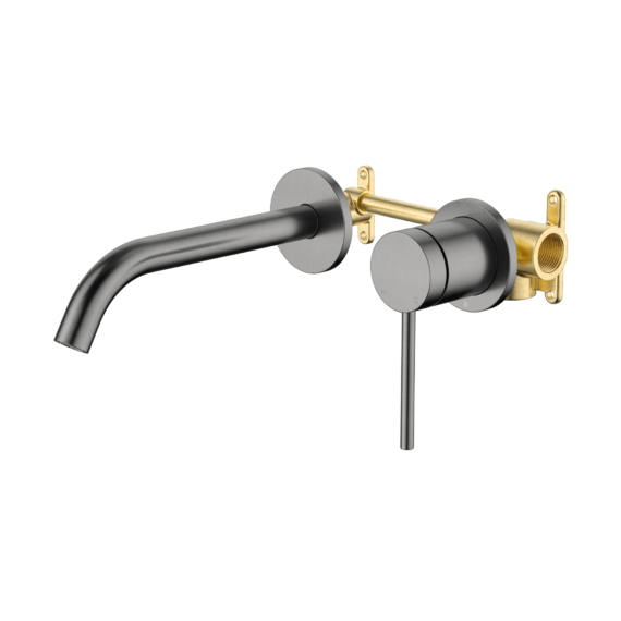 - Wall mounted basin mixer with ultra thin pin lever handle