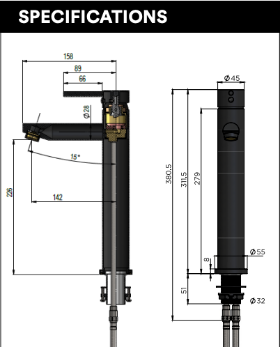 – Easy-to-follow installation instructions included for this Shadow Bathroom Mixer Tap