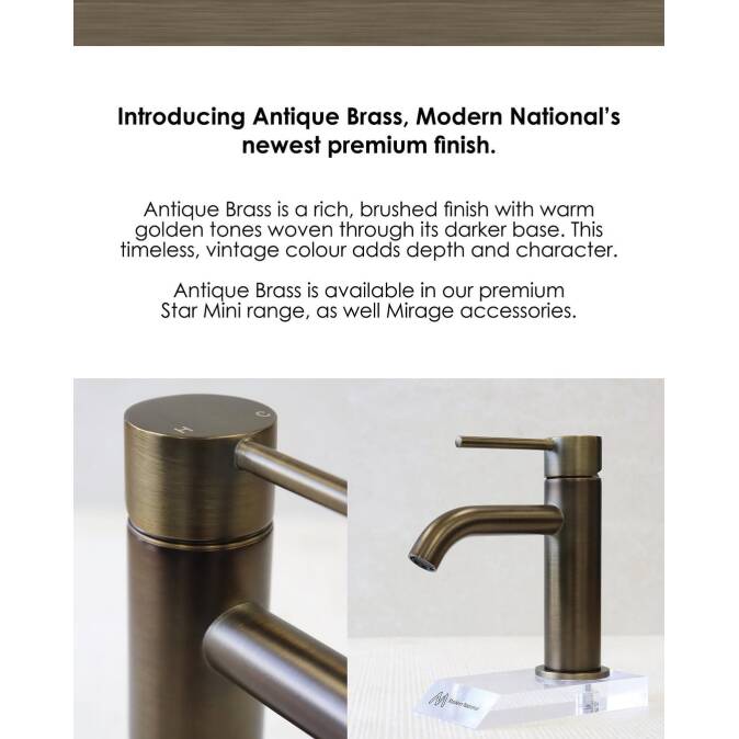 The Star Mini Basin Mixer with Curved Spout in Antique Brass delivers a perfect balance of practicality and elegance. Its compact size makes it ideal for smaller vanities, while the graceful curved spout and hand-finished electroplated coating bring timeless sophistication to your bathroom.