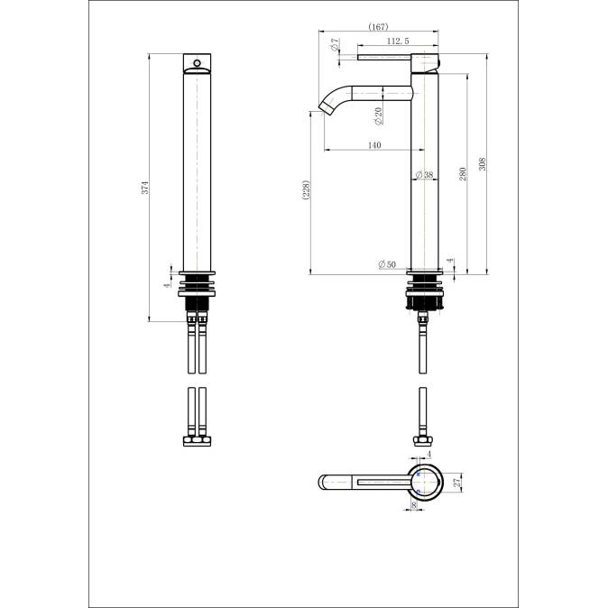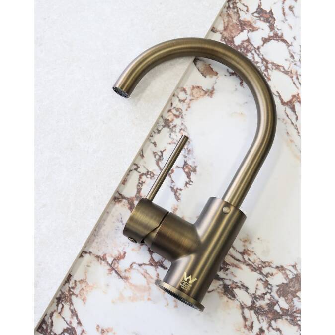 Star Mini Tall Basin Mixer Curved Spout Antique Brass